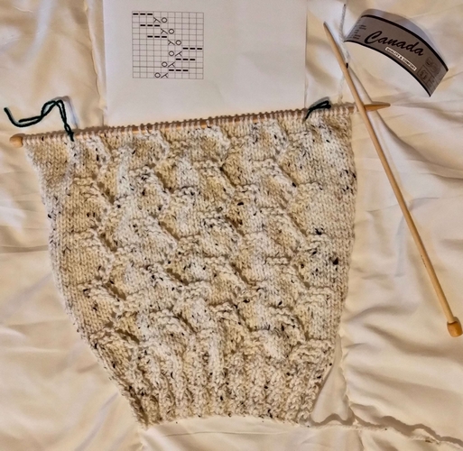 Nouveau point dans la bibliothèque : https://logiciel.kit-tricot.com/bibliotheque/0150 Début d’un nouveau modèle : Le modèle se commence par un poignet et se termine par l’autre poignet. Une seule pièce. Avant de commencer le modèle j’ai créé le logiciel qui me permettra de réaliser ce modèle avec n’importe quel fil et dans n’importe quelle taille. Comme tous les autres logiciels déjà créés, il sera dans le site https://logiciel.kit-tricot.com/ en accès illimité avec votre abonnement annuel. Le modèle aura cette forme : J’ai donc commencé par une manche, avec le fil Canada, aux aiguilles à tricoter n°5. Mon échantillon (avec le point 0150 ci dessus et aux aiguilles n°5) : 40 mailles mesure…
