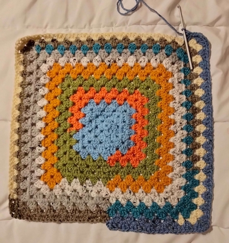 Si on les crochète dans le même ordre on aura un plaid d’environ 1 mètre de coté.