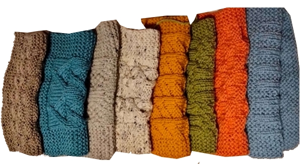 Tous les morceaux comporteront 40 mailles et 60 rangs et auront du point mousse sur tout le tour.