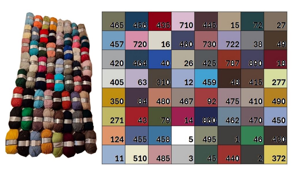 Principe du fil rouge 2026 = réalisation d’un couvre lit pour 2 personnes en Canada avec 64 morceaux = 64 points tricot différents