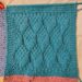 = la troisième bande terminée. On commence la bande suivante en tricotant le morceau n°25 juste à coté du morceau n°17. Même technique de fixation que précédemment.