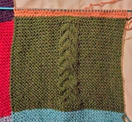 11 mailles au point mousse – 18 mailles au point 236 – 11 mailles au point mousse
