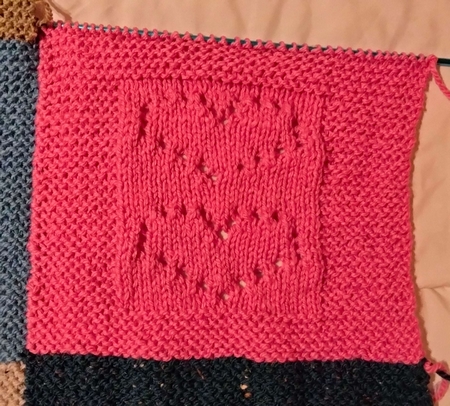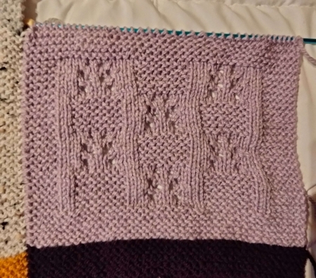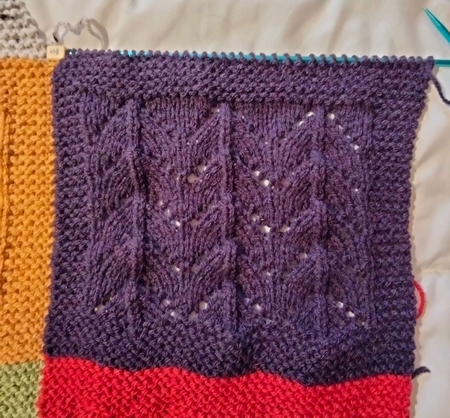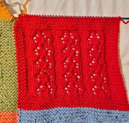 Principe du fil rouge 2026 = réalisation d’un couvre lit pour 2 personnes en Canada avec 64 morceaux = 64 points tricot différents